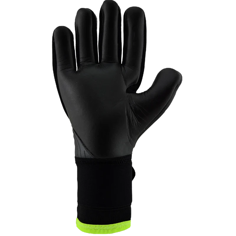 Esta versión en negro con detalles en amarillo flúor, parte de la colección Electric Stealth, mantiene la esencia de la línea Copa, combinando un diseño clásico con materiales de alta gama y tecnologías profesionales. Es ideal para porteros que controlan el partido con precisión, seguridad y determinación.